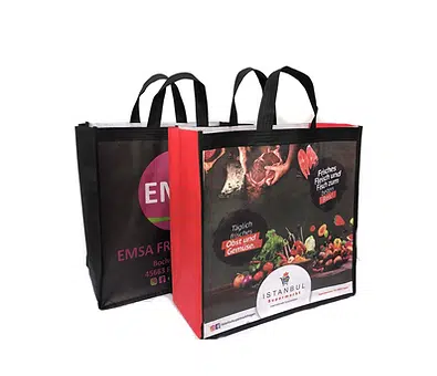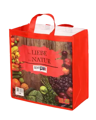 Diese Tragetaschen sind nicht einfach nur Taschen; sie sind ein Medium, um Ihre Marke zu präsentieren. Das klare und lebendige Druckbild auf dem Non-Woven Material zieht die Blicke auf sich, und Ihre Botschaft wird mit jeder Nutzung weitergetragen. Sei es auf Messen, in Geschäften oder auf der Straße – Ihre Marke wird in jeder Hand, die diese Tasche trägt, weitergetragen.
